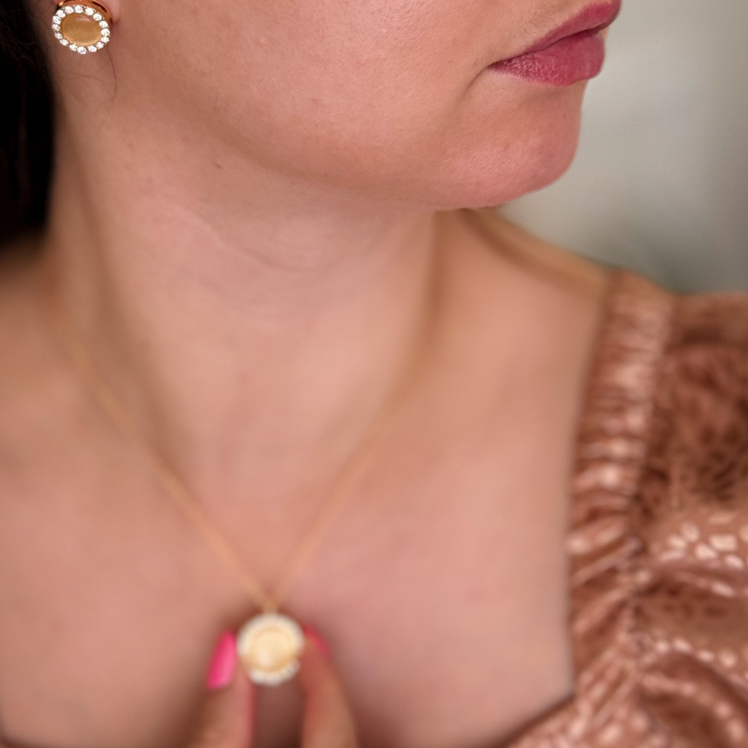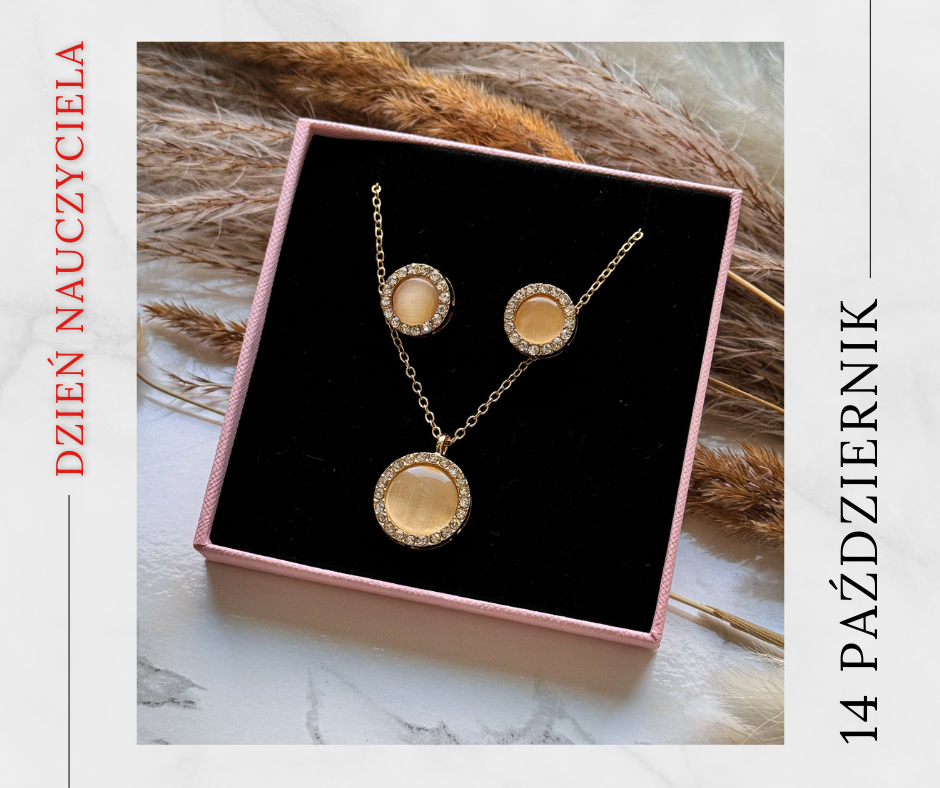 Zestaw biżuterii ze stali chirurgicznej pozłacanej 18-karatowym złotem z kwarcem różowym.