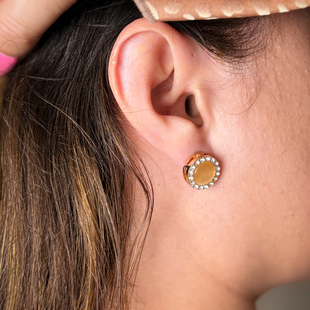 Kolczyki wykonane ze stali szlachetnej certyfikowanej, bez dodatku niklu, ołowiu czy chromu. Pozłacany 18-karatowym złotem. Z kamieniem różowy kwarc.