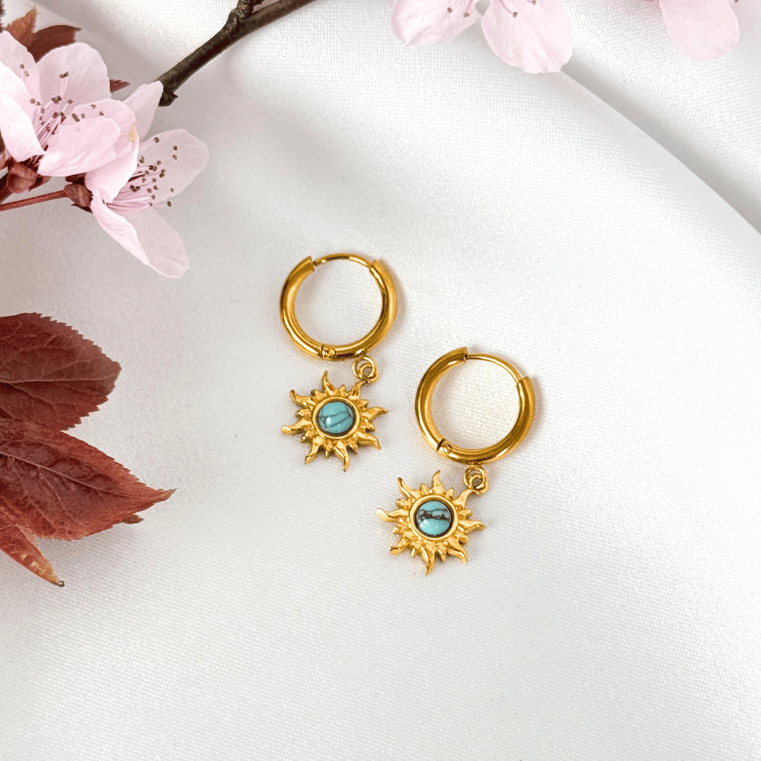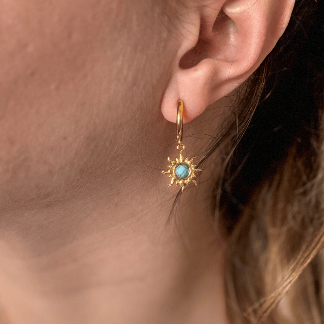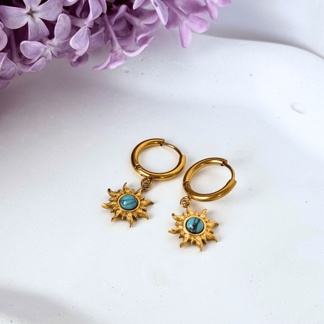 Pozłacane kolczyki w kształcie gwiazdy z turkusem – styl, który przyciąga spojrzenia!