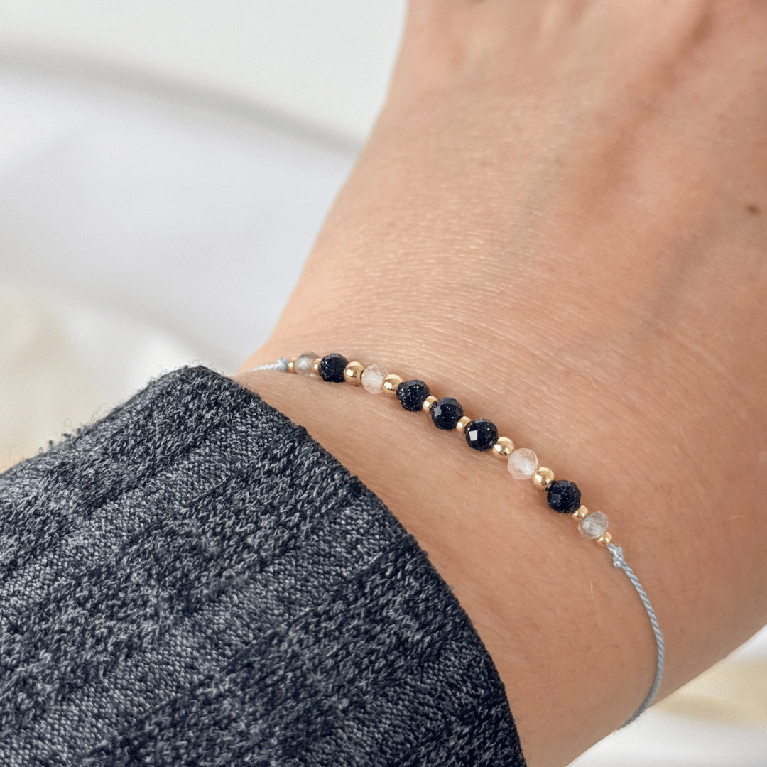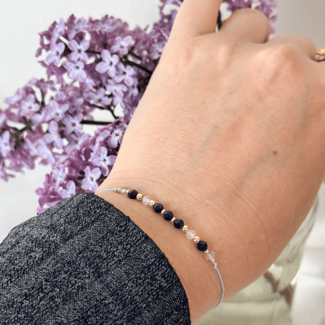 Ta wyjątkowa bransoletka została ręcznie wykonana na delikatnej, ale wytrzymałej nitce jedwabnej. Dzięki regulacji za pomocą eleganckiej kulki bez problemu dopasujesz ją do nadgarstka – nawet bardzo wąskiego. Maksymalna średnica to 24 cm, co sprawia, że bransoletka jest niezwykle wygodna i uniwersalna.