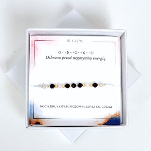 Bransoletka ochronna na jedwabnej nitce – Noc Kairu, Kwarc Różowy i Kryształ Górski ✨