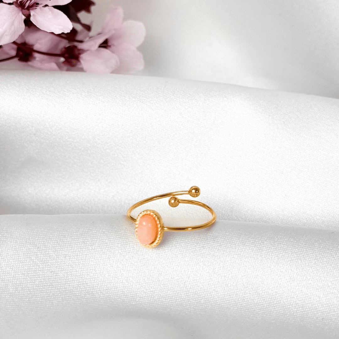 Regulowany pierścionek z kwarcem różowym – nowoczesna elegancja z nutą natury ✨