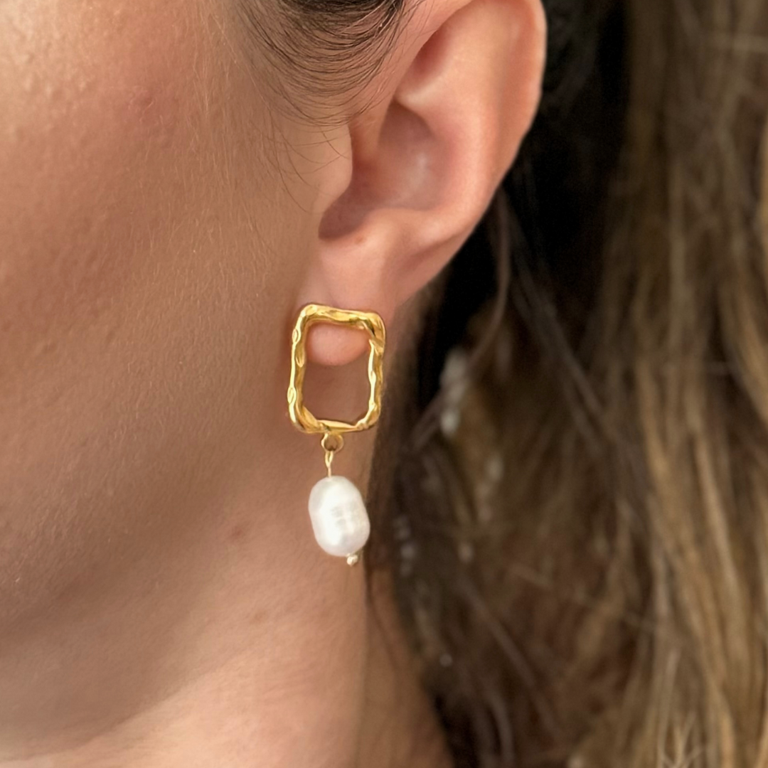 Zestaw biżuterii ze stali chirurgicznej pozłacanej 18-karatowym złotem z naturalną perłą słodkowodną.